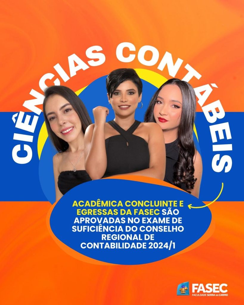 As concluintes e egressas do curso de Ciências Contábeis da Faculdade Serra do Carmo (FASEC) foram aprovadas no Exame de Suficiência do Conselho Federal de Contabilidade (CFC) 2024/1. O exame é um dos requisitos para a obtenção de registro profissional em Conselho Regional de Contabilidade (CRC). O resultado final pode ser conferido aqui.