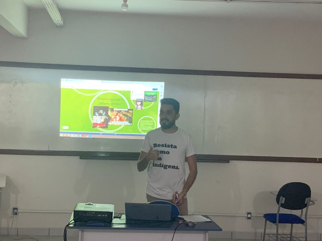 As palestras “O que devemos saber sobre os povos indígenas” trataram sobre direitos, história e desmistificação dos povos indígenas. No período da manhã, o debate aconteceu com os acadêmicos de direito, da disciplina direito ambiental da docente Liliane Borges. Já no período noturno, a discussão uniu as turmas de direito ambiental e direito constitucional III das professoras Lívia Helena e Liliane Borges, respectivamente, disciplinas que debatem também a causa e temática indígena.