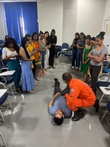 O minicurso de primeiros socorros, com técnicas e práticas, teve como objetivo principal capacitar os estudantes da saúde a agirem em situações críticas de emergência, preservando a vida.